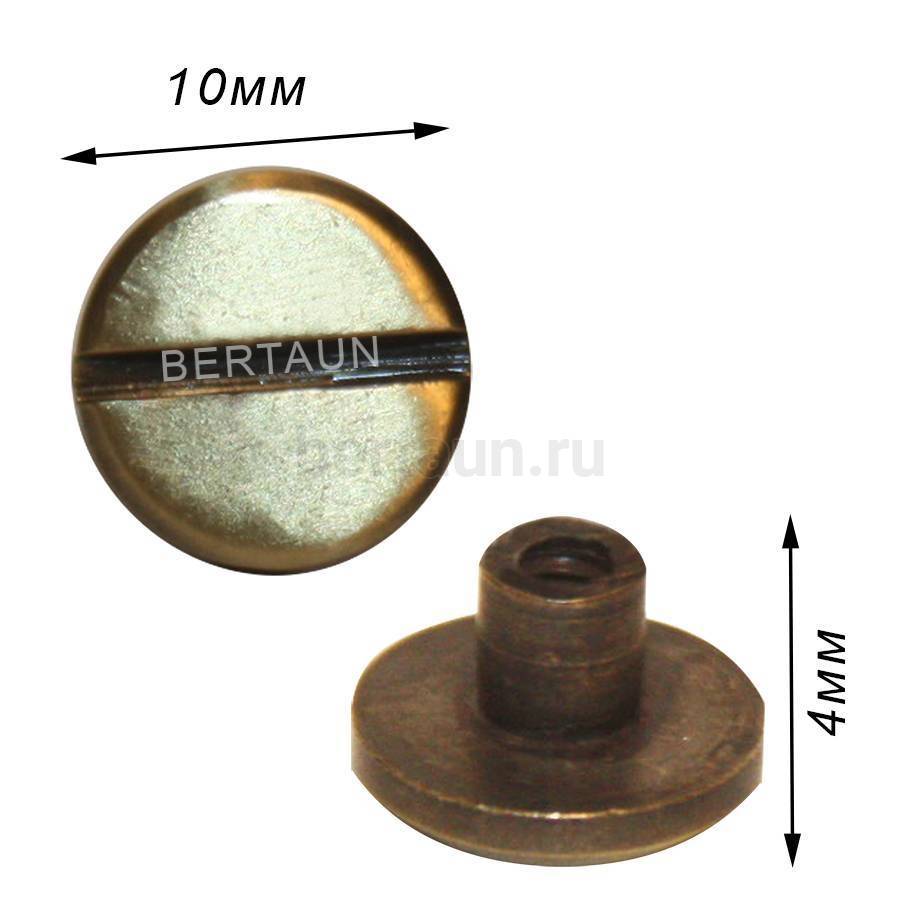 - Фурнитура №92 винт ЛЮКС h4*d10 мм д/кожгалантереи (10ш/уп) BERT АНТИК