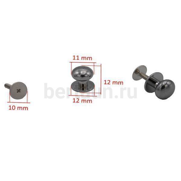 - Фурнитура № 1 Кнопка кабурная для сумок и ремней 11*12 мм (10 шт/упак) никель BERT