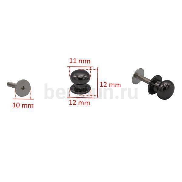 - Фурнитура № 2 Кнопка кабурная для сумок и ремней 11*12 мм (10шт/упак) тем.никель BERT