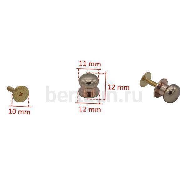 - Фурнитура № 3 Кнопка кабурная для сумок и ремней 11*12 мм (10 шт/упак) золото BERT