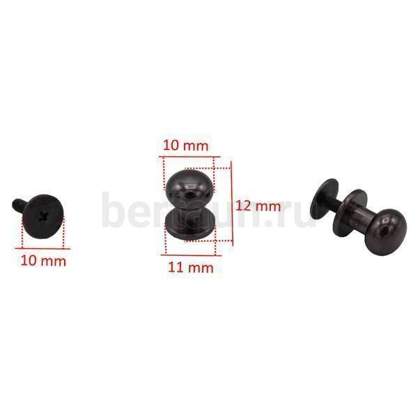 - Фурнитура №34 кнопка кабурная для сумок и ремней 10*12 мм тем.никель 10 шт/уп BERT