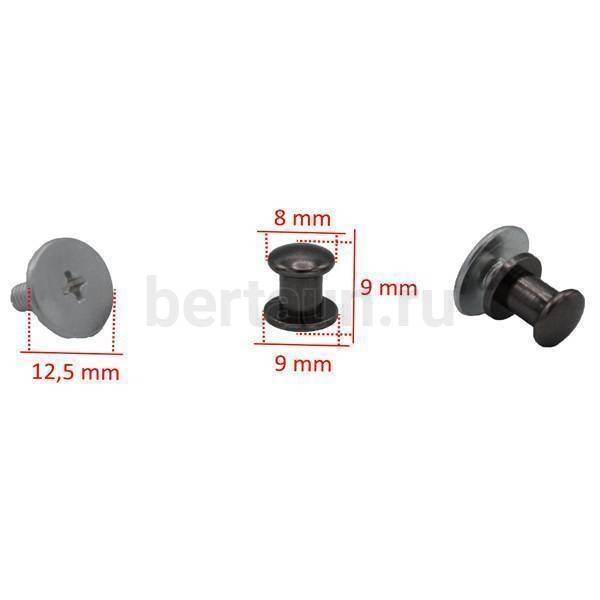 - Фурнитура №35 кнопка кабурная для сумок и ремней 8*9 мм тем.никель 10 шт/уп BERT