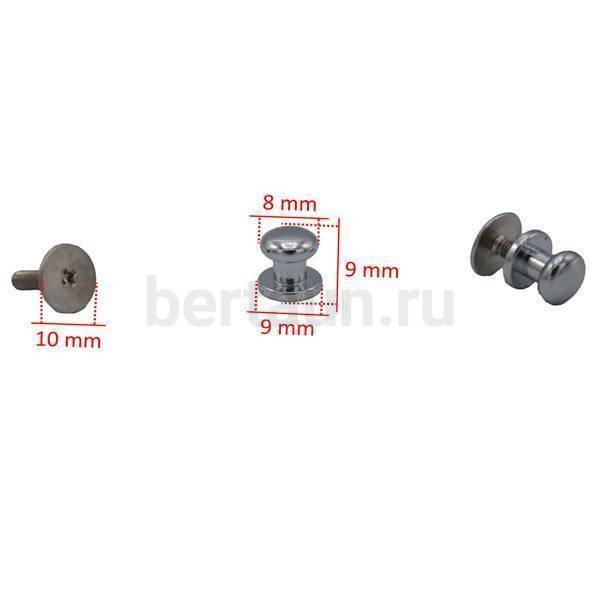 - Фурнитура №36 кнопка кабурная для сумок и ремней 8*9 мм никель 10 шт/уп BERT