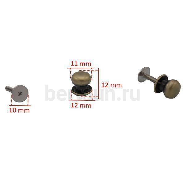 - Фурнитура № 4 Кнопка кабурная для сумок и ремней 11*12 мм (10 шт/упак) антик BERT