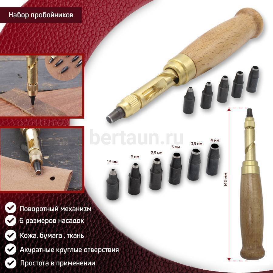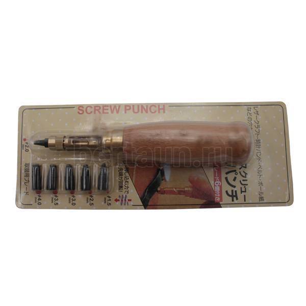 - Инстр. №232 набор пробойников (d1,5/2/2,5/3/3,5/4мм) с дер. ручкой