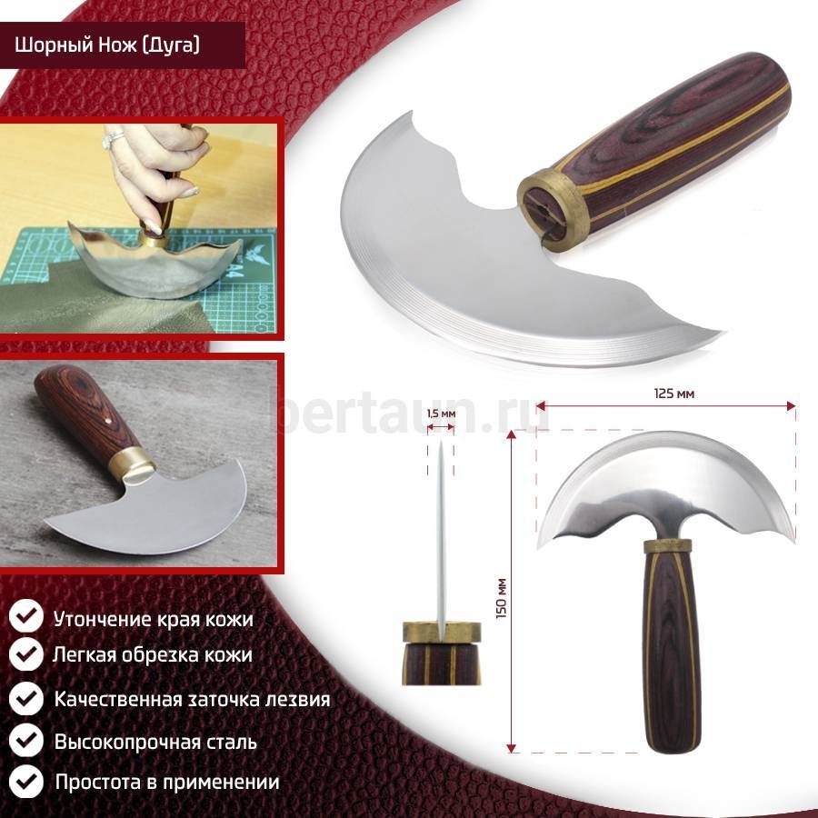 - Инстр. №235 шорный нож150мм для кожи с полукруглым лезвием D 125 мм