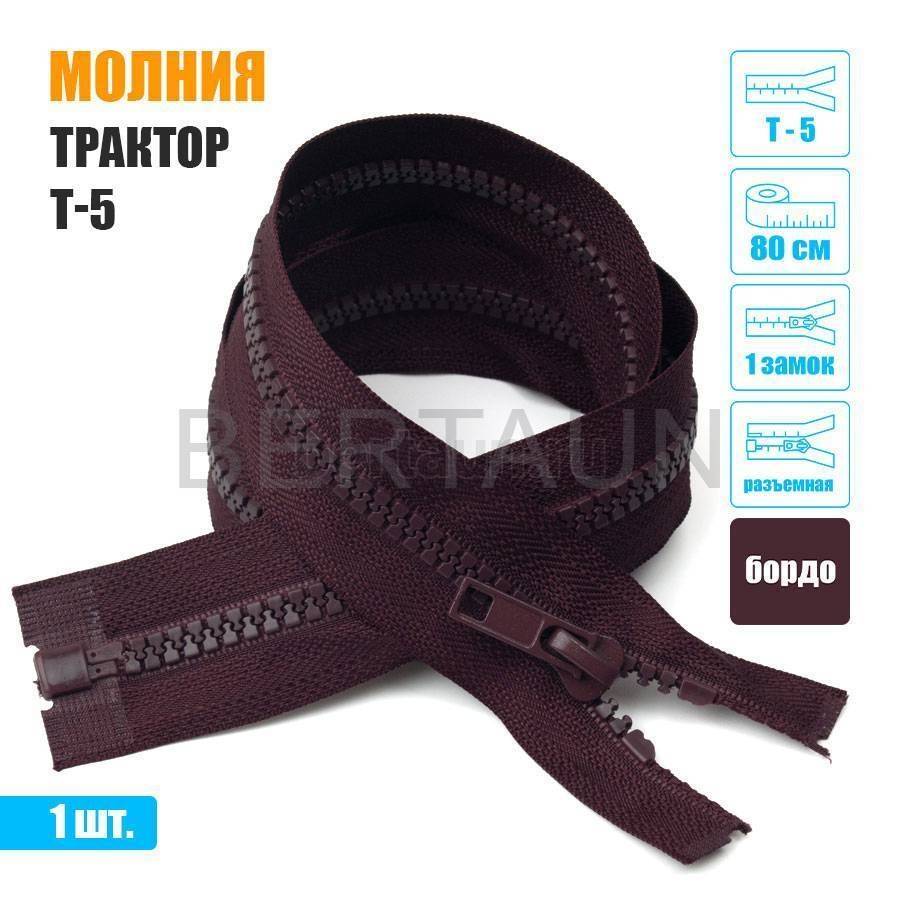 - МОЛНИЯ №445 КУРТОЧНАЯ трактор Т5 1 замка 80 см бордо