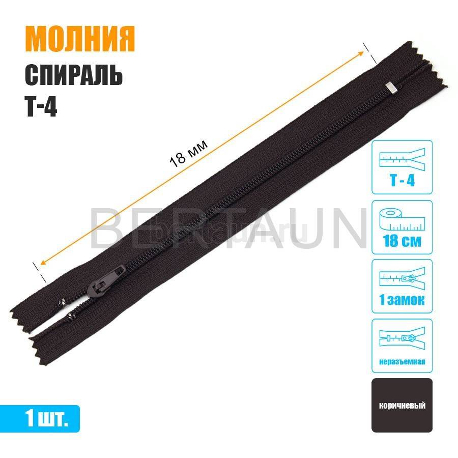 - МОЛНИЯ №489 БРЮЧНАЯ 1 замок спираль Т4 18 см (304) коричневая