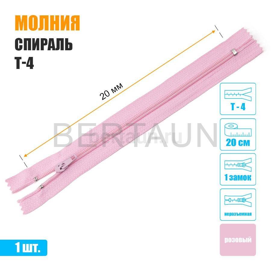 - МОЛНИЯ №502 БРЮЧНАЯ 1 замок спираль Т4 20 см розовая