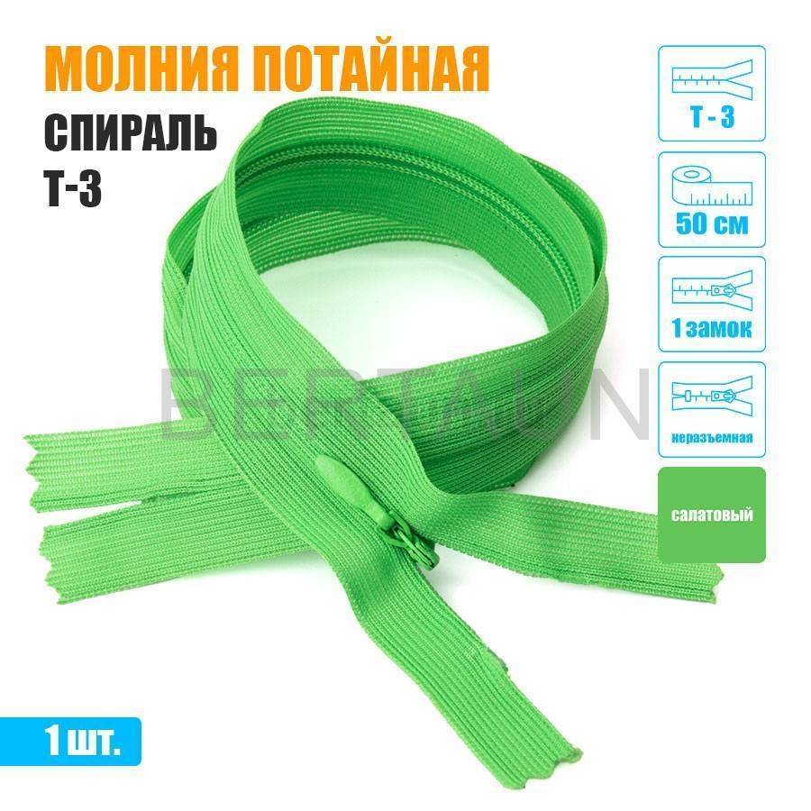- МОЛНИЯ №521 ПОТАЙНАЯ 1 замок спираль Т3 50 см (334) салатовый