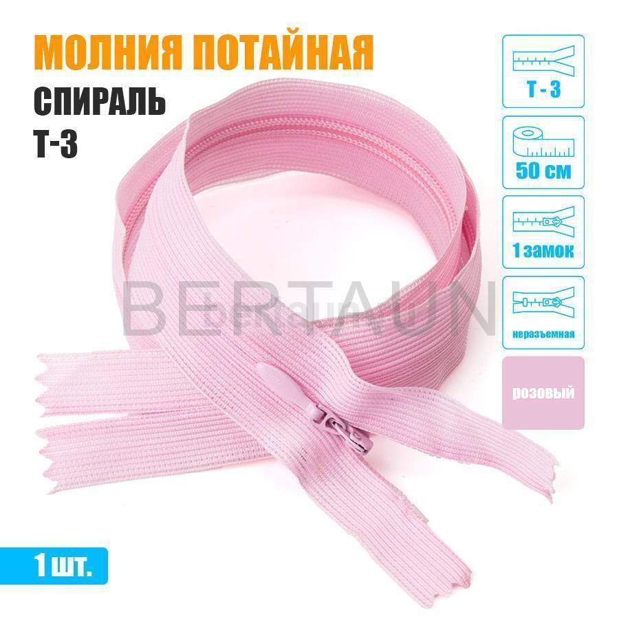 - МОЛНИЯ №535 ПОТАЙНАЯ 1 замок спираль Т3 50 см (134) розовый