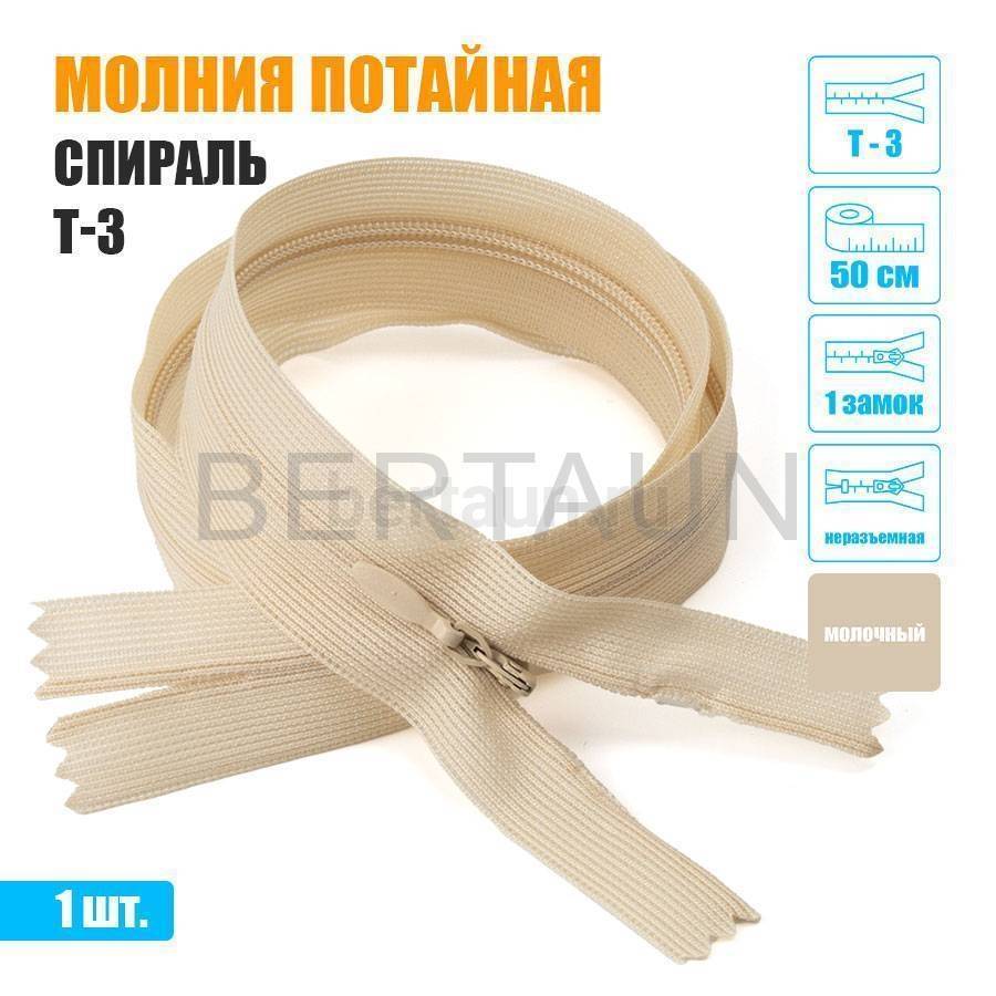- Молния неразъемная т3 потайная 1 замок 50 см