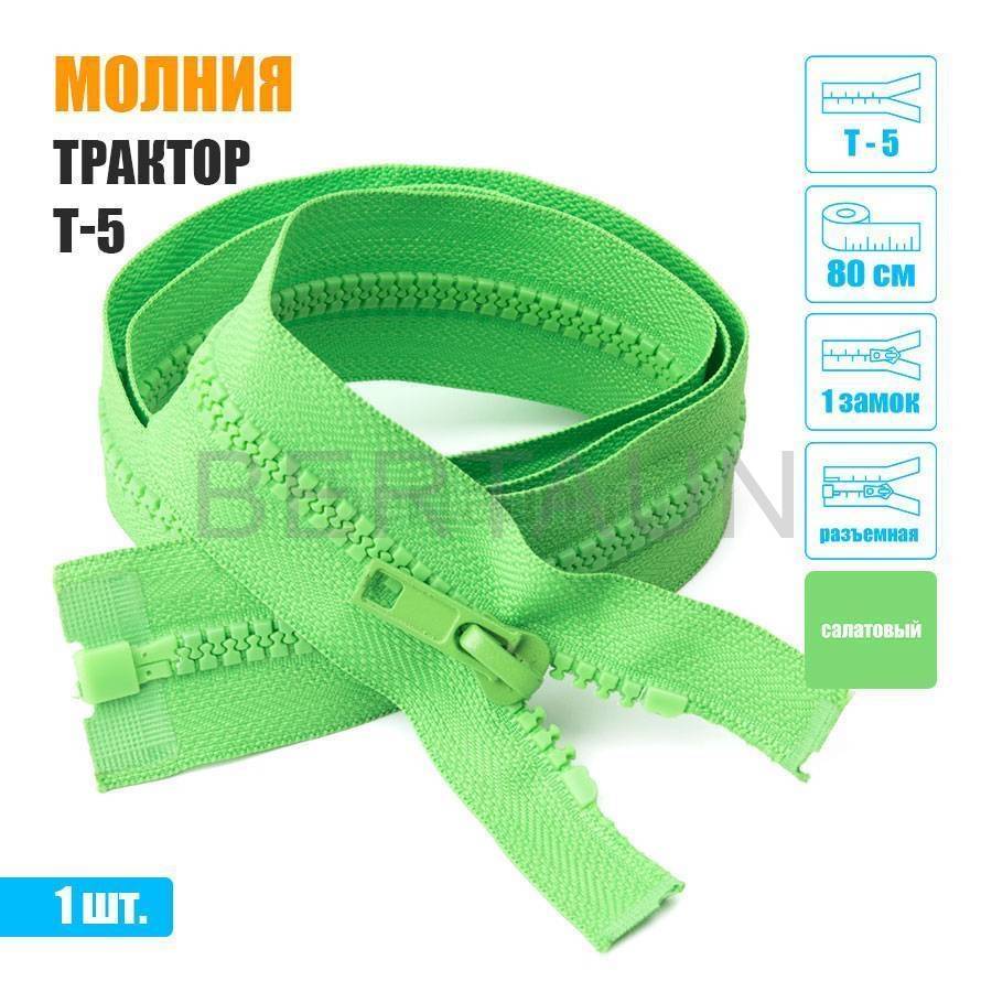 - МОЛНИЯ №604 КУРТОЧНАЯ Т5 трактор 1 замок 80 см салатовая