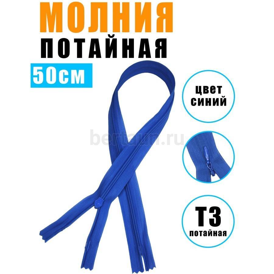 - МОЛНИЯ №606 ПОТАЙНАЯ 1 замок спираль Т3 50 см (213) ярко синий
