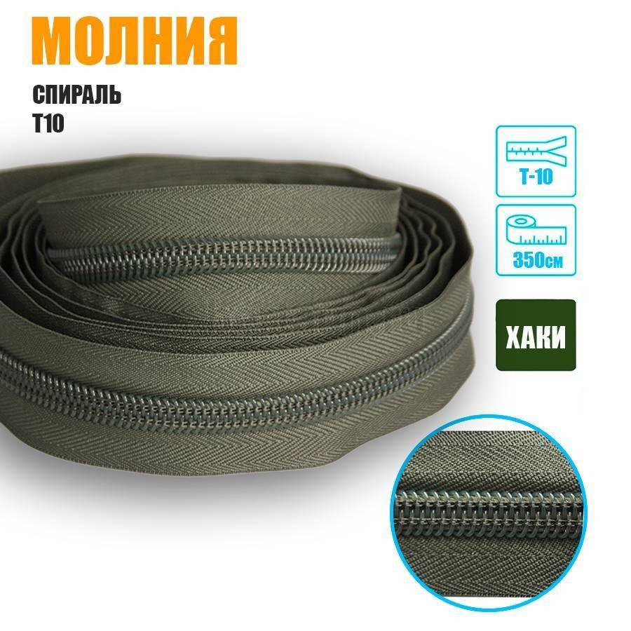 - Молния рулонная № 40 спираль Т10 хаки