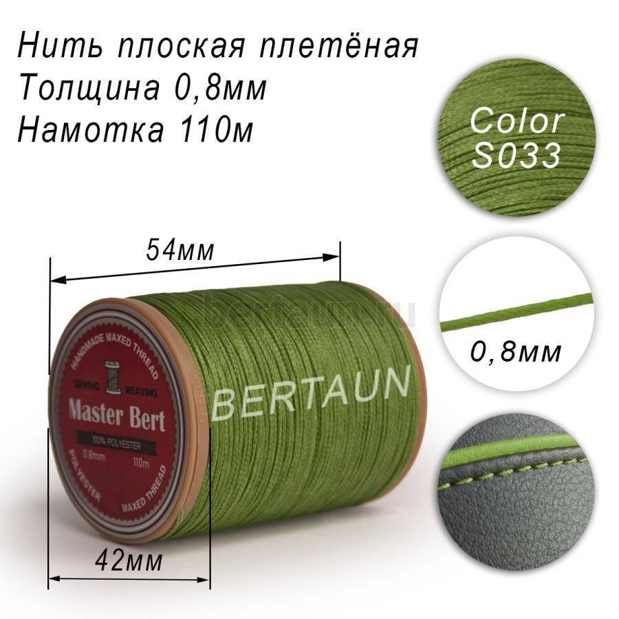 - Нитки вощеные№286 d 0.8мм 110 м Master Bert плоские (Polyester Flat) S033 салатовый