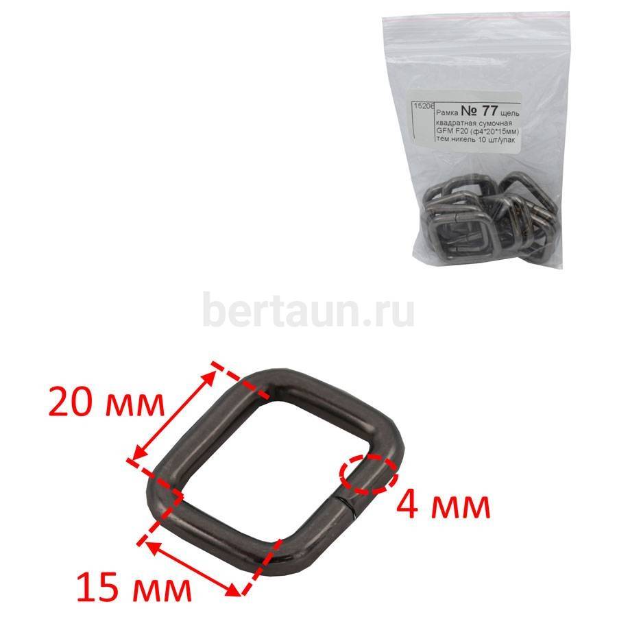 - Рамка № 77 щель квадратная сумочная GFM F20 (ф4*20*15мм) тем.никель 10 шт/упак
