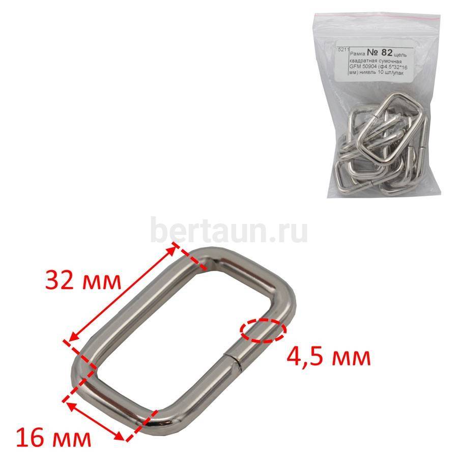 - Рамка № 82 щель квадратная сумочная GFM 50904 (ф4.5*32*16 мм) никель 10 шт/упак