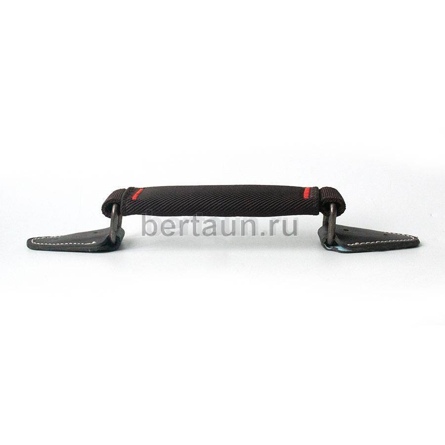 - Ручка портфельная № 80 ТКАНЕВАЯ крепеж кожз. фур. ТЕМН.НИКЕЛЬ корич. с белой прошивкой #1